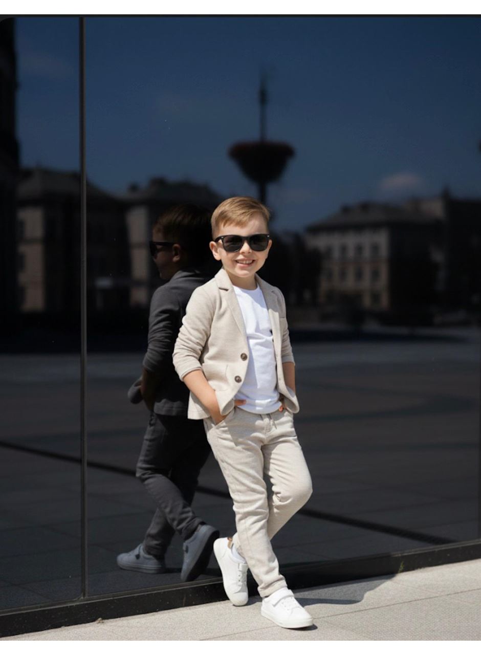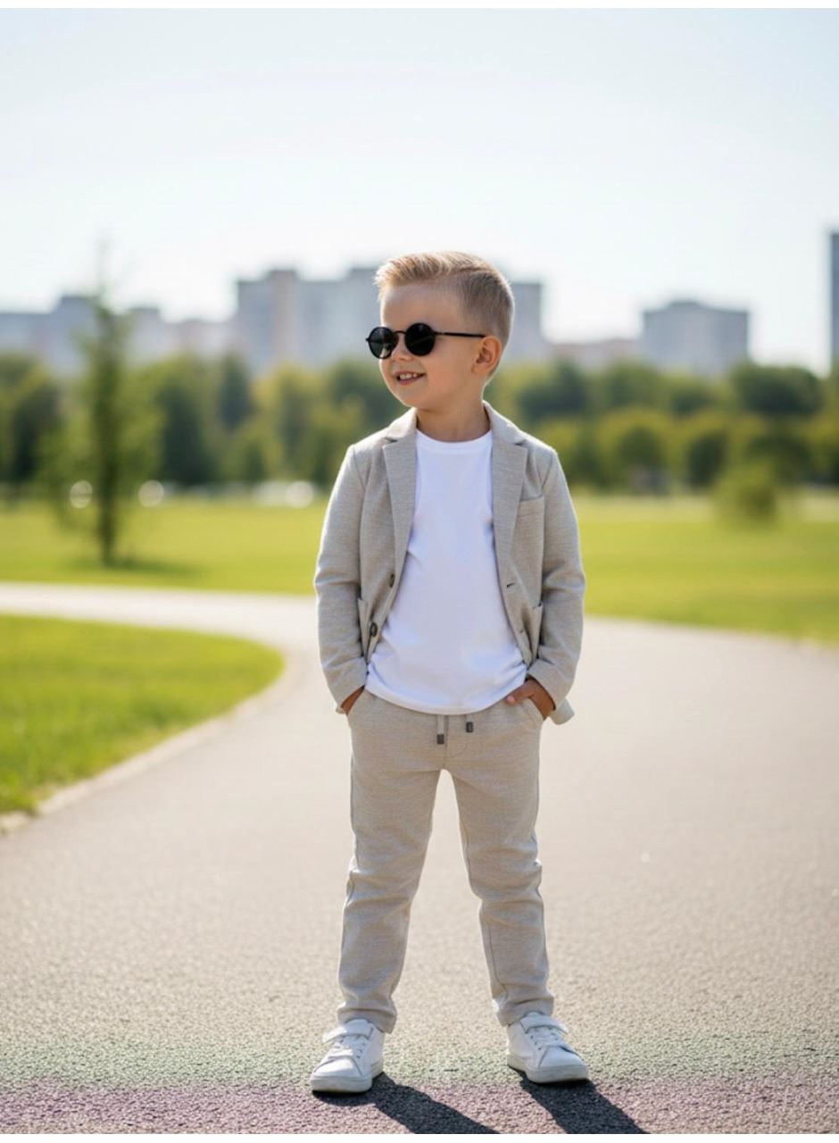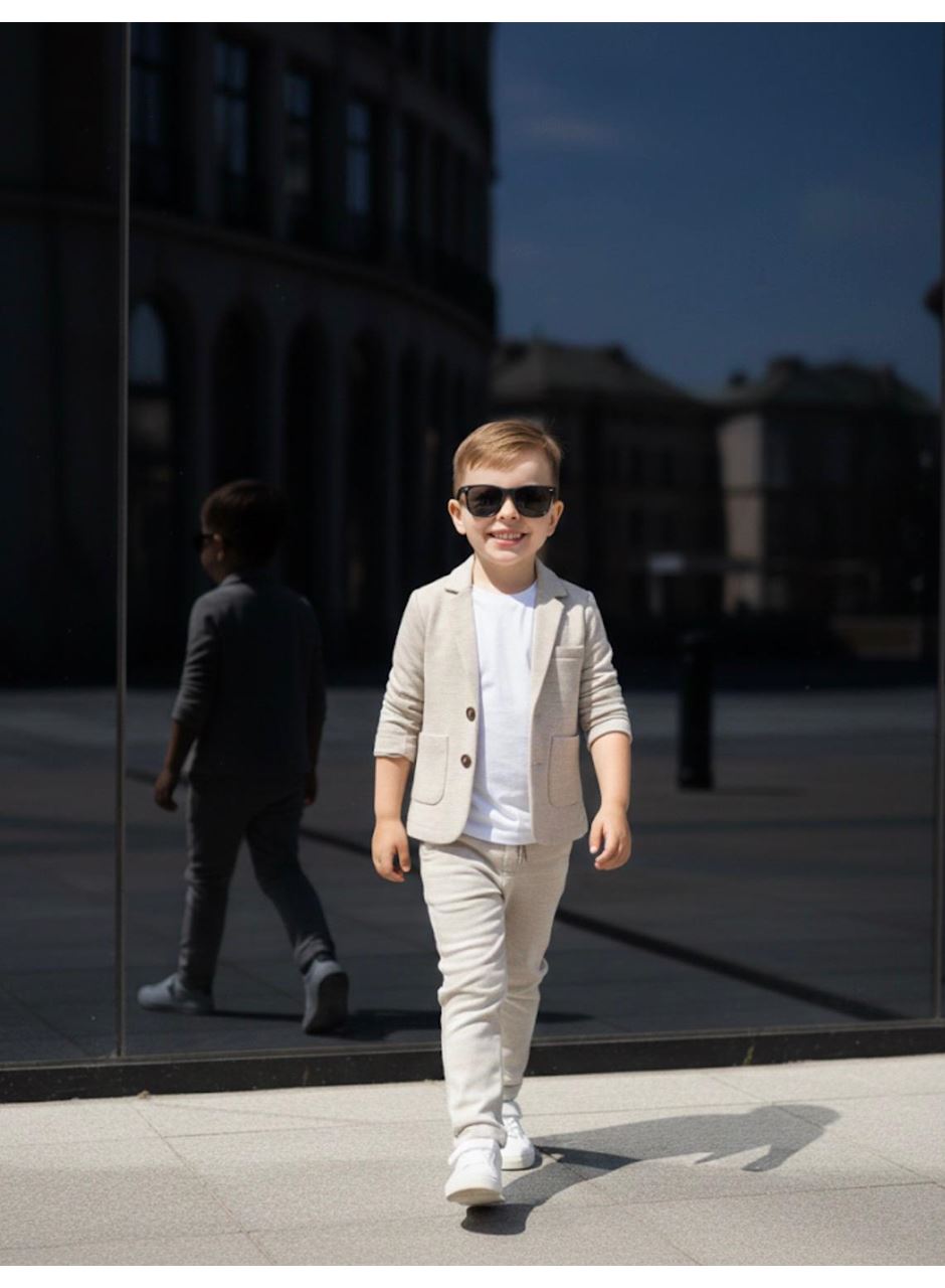 KETEN T SHİRTLÜ CEKETLİ TAKIM 6-9 YAŞ KREM