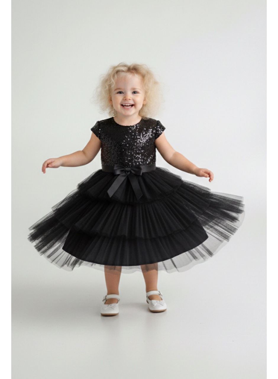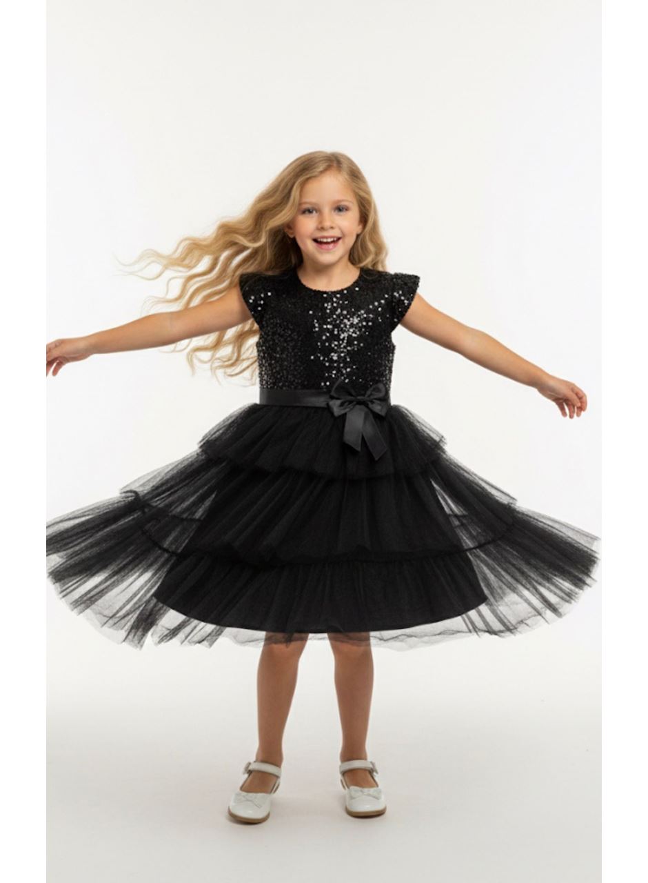 KIZ ÇOCUK PULLU TÜLLÜ ELBİSE SİYAH